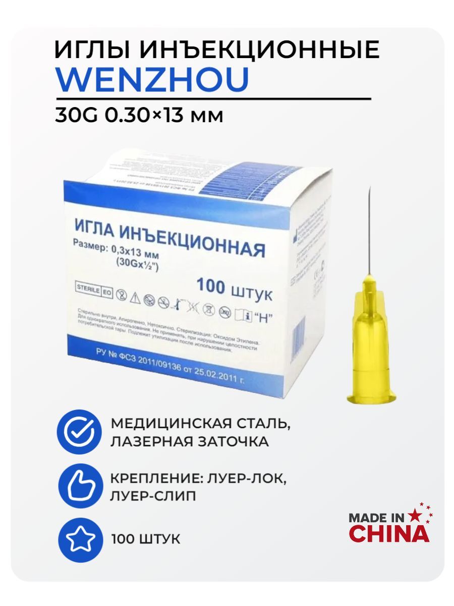 Игла инъекционная стерильная 30G (0,3x13 мм), Wenzhou Beipu, 100 шт/упак предназначена для процедур, требующих точности и минимальной инвазивности, что позволяет использовать иглу для подкожных и внутрикожных инъекций.